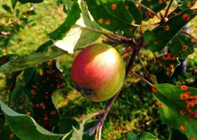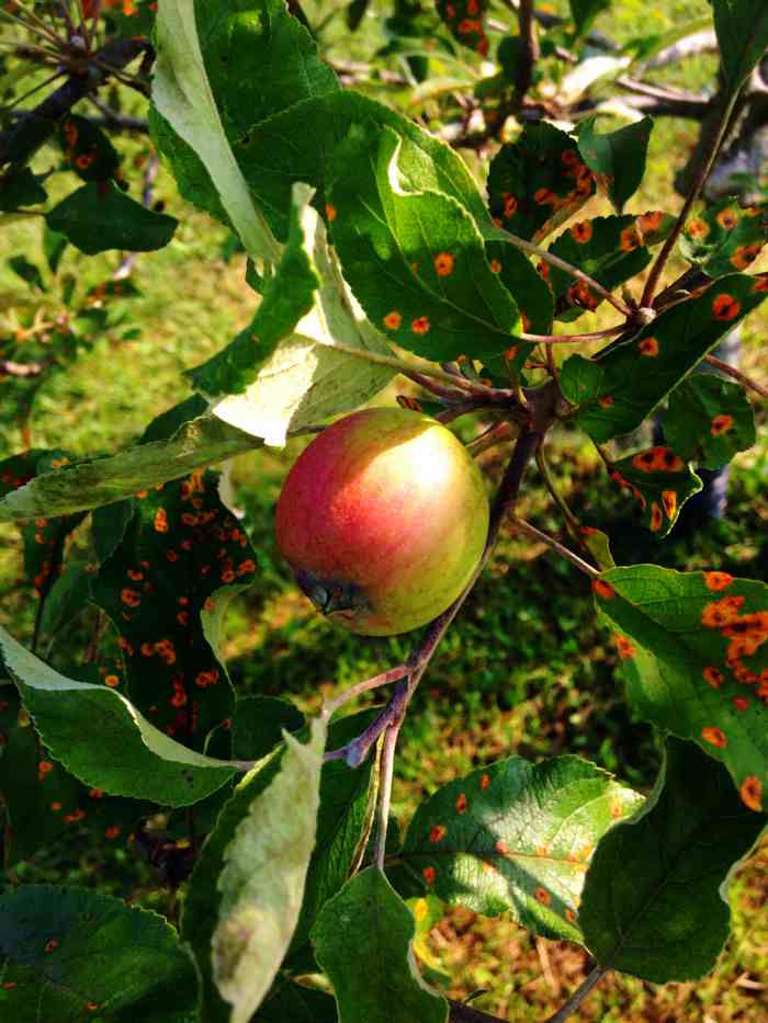 2014 was looking pretty good for a good apple set. We had plenty of flowers on all three trees. I was excited to see them, the weather stayed mild during the bloom that spring. The only thing missing this year was the pollinators, bees. We had very few bees visit the trees during the bloom. This resulted in a light set of apples. Compounded by a dry growing season the apples that were there did not do so well. I noticed mold or growth on the leaves that I could not identify. Off I went to the TN agricultural extension for some advice. The wise guy who helped me indicated that the trees were suffering from red cedar blight. I asked what I could do to resolve the issue, he stated a “Chain Saw” and cut them down.