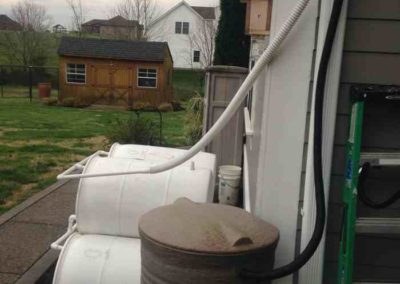 I have since supplemented these holding tanks with another food-grade 250-gallon tank near the garden. I use a transfer pump to get the water to that barrel which is situated about 50 yards from the collection system.