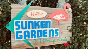 From the 1950s through the 1970s, Sunken Gardens was ranked among Florida’s top ten commercial attractions. Today, the City of St. Pete runs it, and they’re taking good care of it. The four acres are home to more than 500 species of native and exotic plants — bougainvilleas, royal palms, fruit trees, a butterfly garden, koi ponds, cascading waterfalls, and a flock of flamingos that have been residents since the 1950s. The winding paths are shaded and well-kept, making it a genuinely pleasant escape from the Florida heat on a warm afternoon. Ginny and I took our time, and that was exactly the right call.