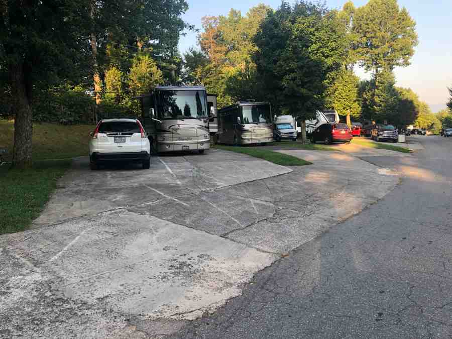 This park is perfect for you if your plans include sightseeing around Asheville. You have convenient access to all the attractions that surround this park. The road noise may get to some, we felt it was moderate and did not distribute us during our sleep. If you choose the pull-through route your nose will be close to South Bear Road. Again we did not find this an issue.