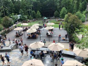 Music was coming from the bandshell at the end of the property. This is a free show that goes on every Saturday night at the amphitheater. The place was hopping with dogs, beers, and plenty of corn hole games going on. We could see folks playing and walking the gardens