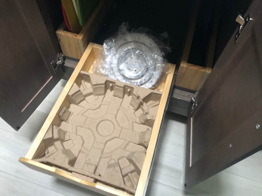 I took the packing material from inside the Insta-Pot box and cut it to fit the drawer. This kept the pot from sliding around during travel.