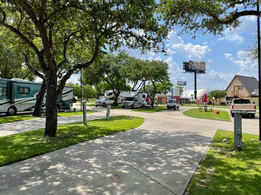 We needed a break spot between San Antonia and Beau Bridges, LA. It was early July and the temperatures were climbing into the high 90’s. We had booked a Harvest Host but were now concerned about the lack of hookups to run our AC. We pulled the plug on our Harvest Host staff and booked this location the day of.