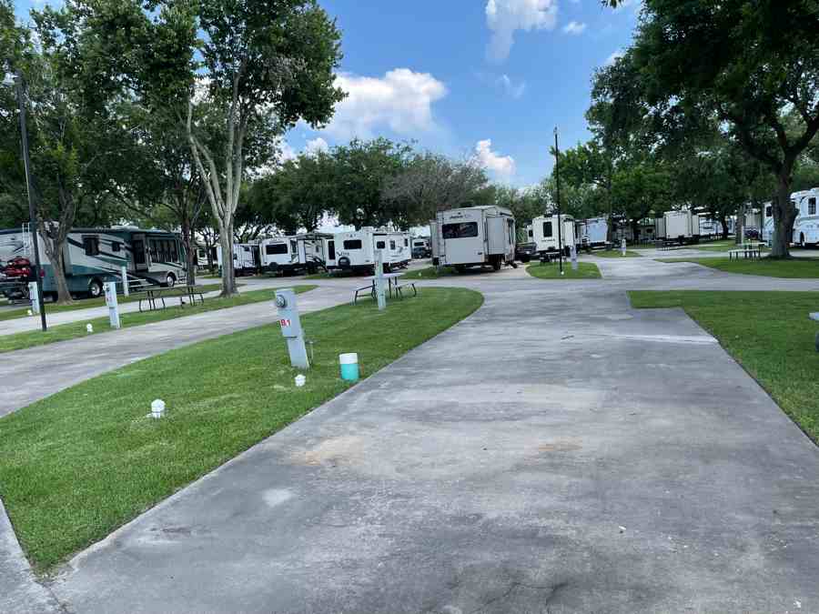 This park is well maintained and in great working condition. The sites are level with power pedestals, water, and sewer located mid-ship. Being close to I-10 we did like the fact that the Resort was gated. You will have very easy access to I-10 from the frontage road the resort is located on. The Resort is just spotless and all of the grass area when we were there had been cut and raked.