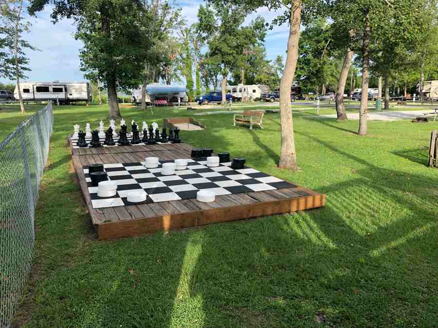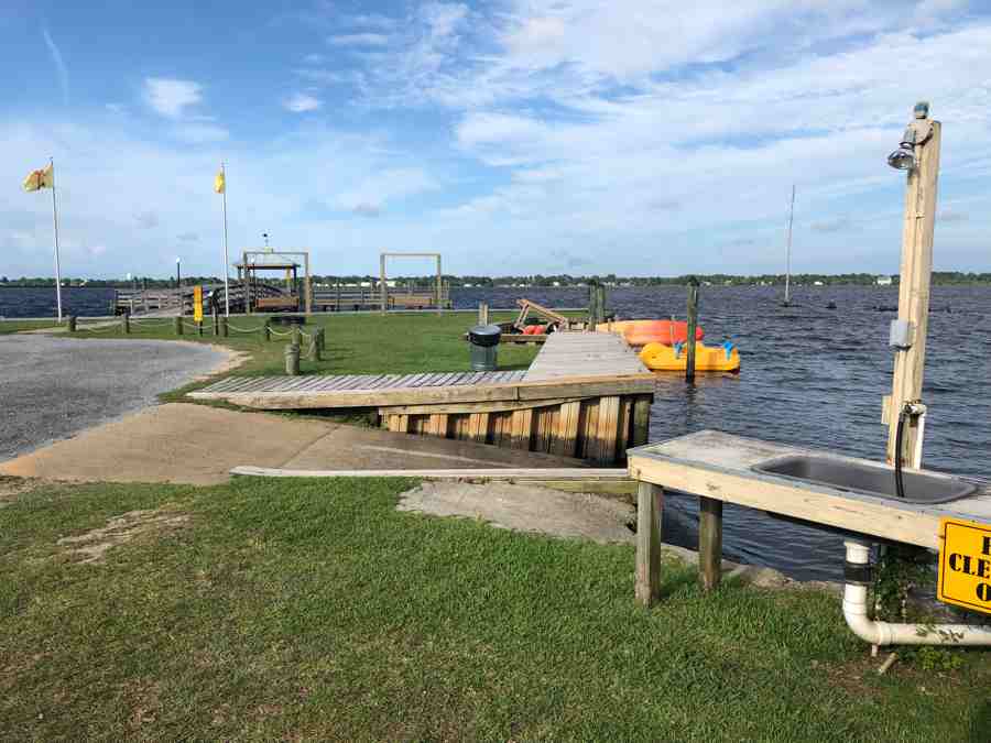 The facilities in this park are well places and in the best working order of any location, we have visited. The family bathhouse located near the center SW border is large and very clean. You will find the laundry in the main office building. The machines are in great working order and costs are average for use. They do have a rather large meeting room building on the property. I would expect this to be open for rallies etc. At the West end of the park, you will find a boat launch, pier with a covered gazebo, kayaks, and paddleboats. Fishermen can clean and fillet their catch at a table and sink with running water.