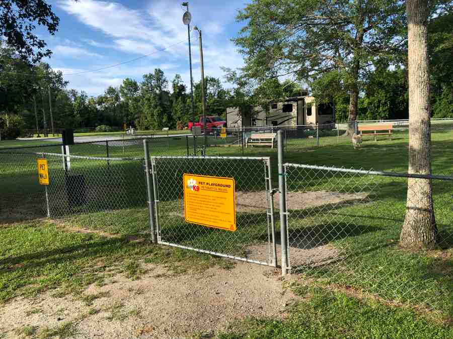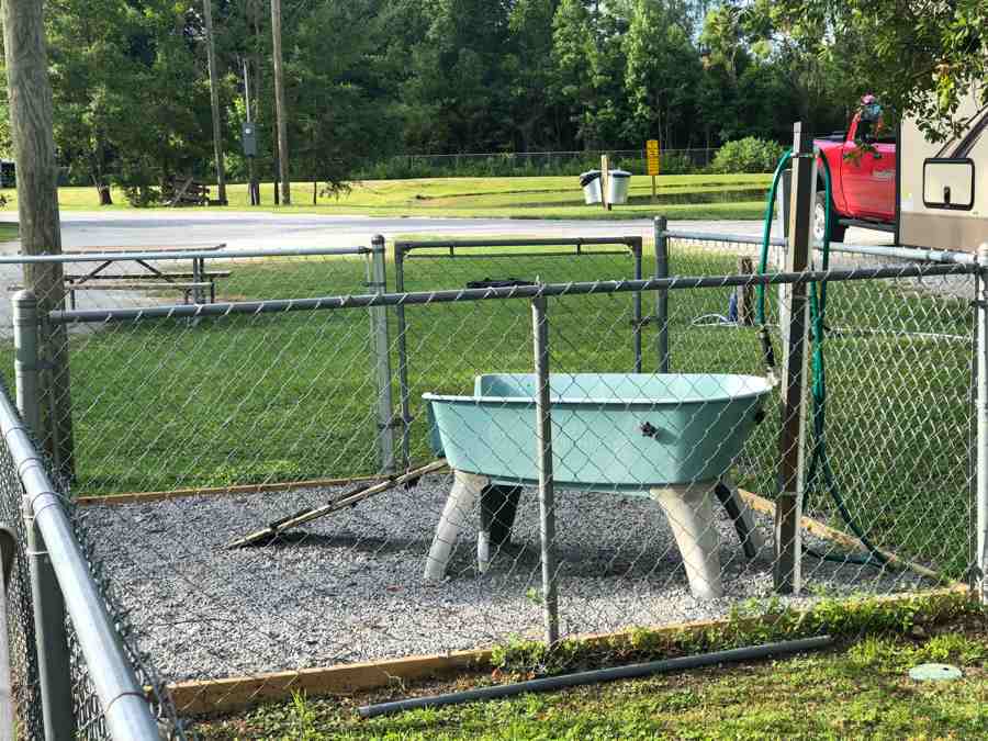 Zoey gave this park, a big paws up. Plenty of green space and areas to relieve your dogs. The fenced-in KampK9’s, yes two are large and set up for large and smaller dogs. The dog wash was a bonus and in great working order. We had some great walks around the park each morning covering about a 1 1/2 miles circuit. The walks including a nice stroll down to the riverfront.