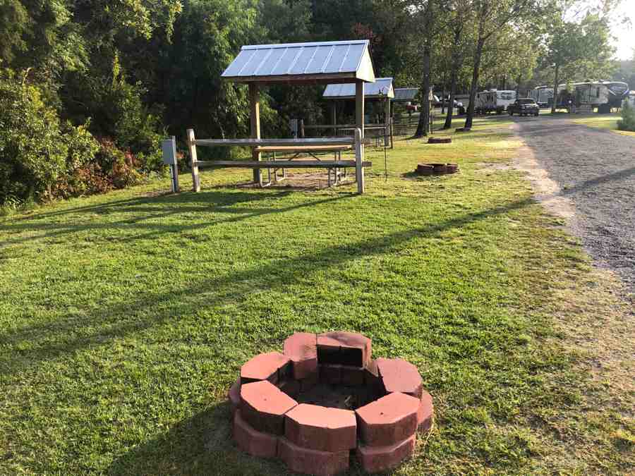 - Sites 42 – 47 are Patio Sites all having the amenities I described above. They all have a bit of shade and a decent view of the river. Site 44 – 47 has the best view. These sites will also accommodate large rigs.