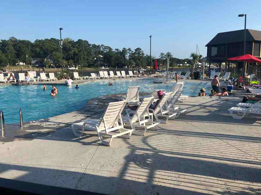 Ginny and I spent a number of evenings sitting on the swings near the intercoastal with great views of the river. Outside of the few dings on the location for the utilities, I mentioned above, the bulk of the sites are 50/30 amp with water and sewage. They offer cable and very good wifi. The cell service was excellent, we used Verizon. There was a cell tower just outside the property, not sure which provider. The main shower, laundry, and bathrooms are located next to the pool. Additionally, you will find three other bathhouses conveniently located throughout the property. One additional dump station with a pull-off is located near the exit of the property.