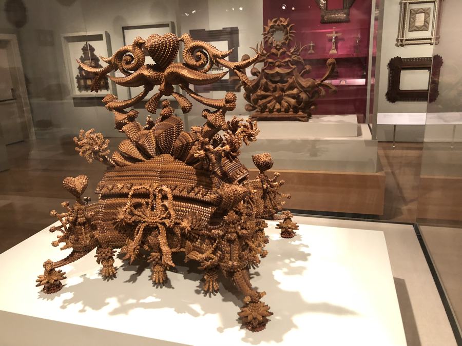 This display presented more than 150 examples of tramp art, concentrating on works the from the United States, with additional examples from France, Germany, Switzerland, Scandinavia, Canada, Mexico, and Brazil to demonstrate the far reach this art form has had.