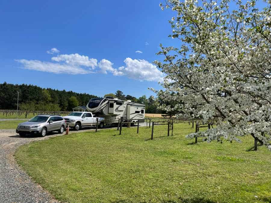 This is a great little Harvest Host location off the beaten path. We needed a stop on your way to Myrtle Beach and this could not have been better. They offer pull-through sites with 50amp power for $20 if you need it. The wine is very sweet and made from the Muscadine grape.