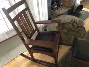 Ginny and I grew up in New York State, Gin not far from Syracuse in Canastota, NY me in Olean. Growing up in this part of the country we would without knowing, come into contact with Stickley furniture almost everywhere we went. Ginny has fond memories of rocking or being rocked in a Stickley-made rocking chair her grandmother had. I can still picture some of the furniture at the Adirondack lodges we would visit on family trips. Schools, Libraries, public buildings all had Stickley furniture in use. Over the years we have managed to pick up a piece here and there. The workmanship, functionality, and quality of this furniture manufacturer have always been very high and remain so today.