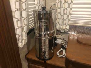 Water sources for both human and animal consumption are a challenge on the road. The water quality is suspect at best at most sites. Here is our program, instead of single-use water bottles, we fill our reusable wide-mouth Nalgene bottle with filtered water from our Travel Berkey Purification System. Less plastic waste and water quality are as good as any bottled water we would buy.